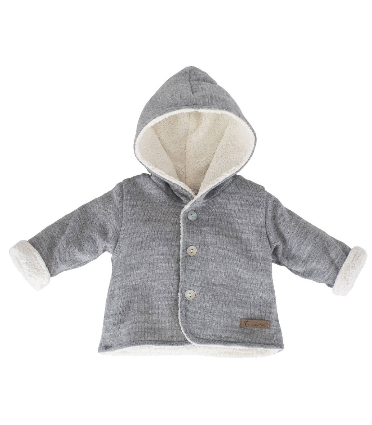 Abrigo o trenca de lana para bebé forrada de borreguito muy suave y calentito.