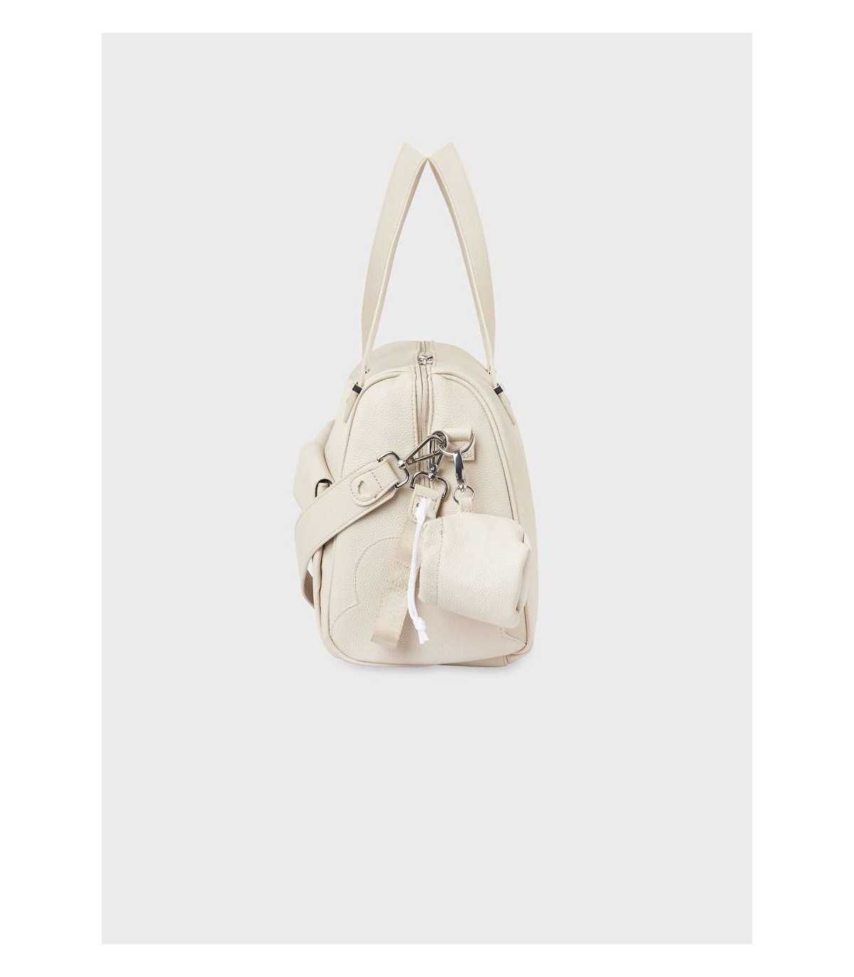LLeva asa para colgar en el carro, asa grande para colgar como bandolera y asas pequeñas para llevar con la mano.
