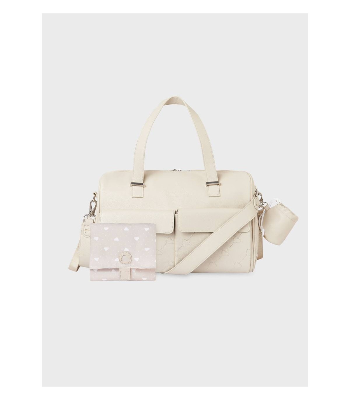 Este producto es un conjunto de bolsos que además del bolso lleva bolsita de ase de tela, bolsita porta chupetes de poli piel y cambiador.