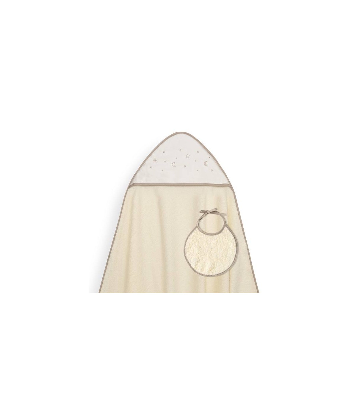 Capa de baño 1 x 1 m con babero estrella luna beig