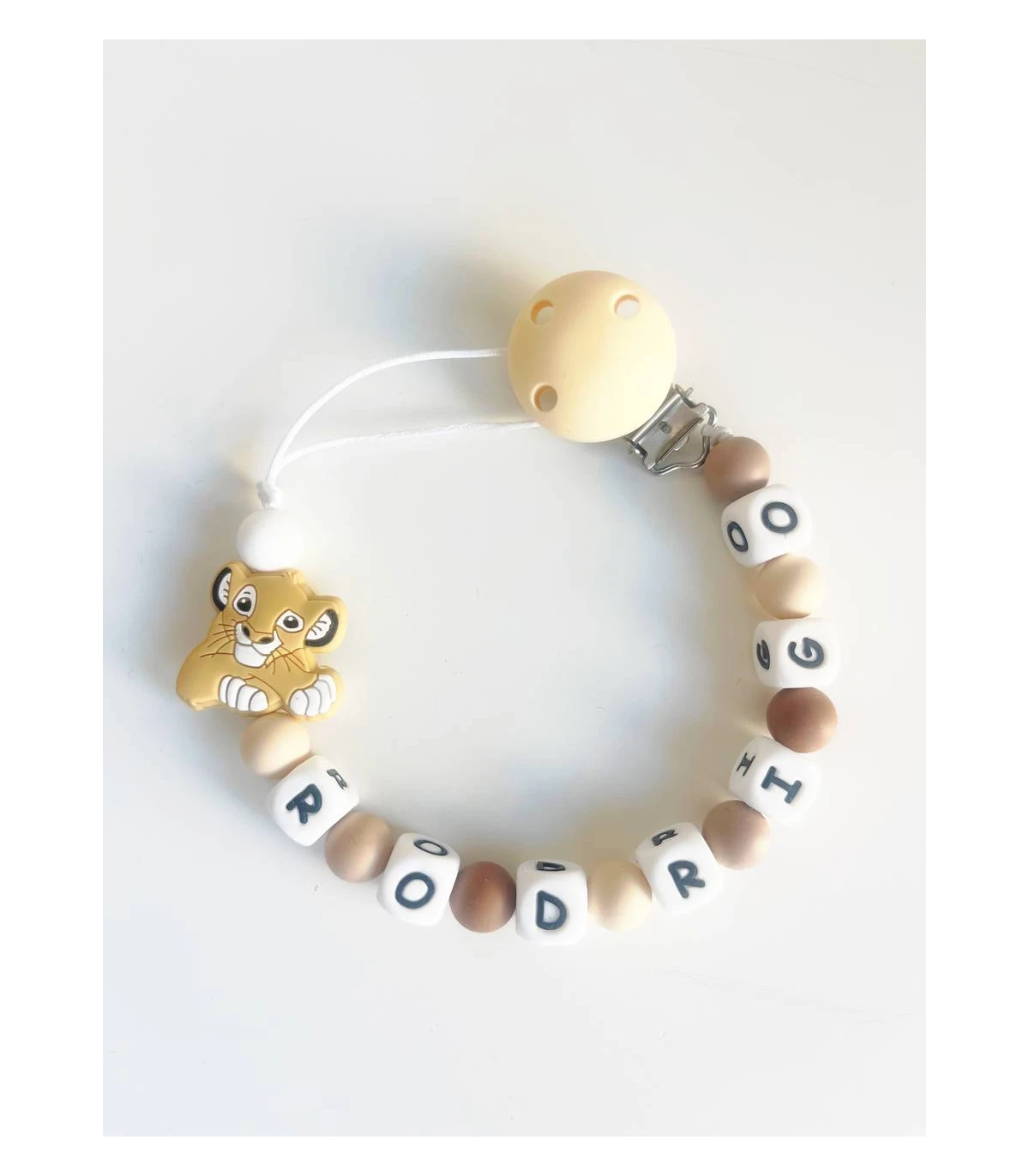 Chupetero con clip de silicona beig y bolitas de de silicona a juego combinadas de colores . El orden de las bolas puede variar en función del tamaño del nombre. No se pueden modificar bolas. Tiempo estimado de entrega de 5 a 7 días laborables.