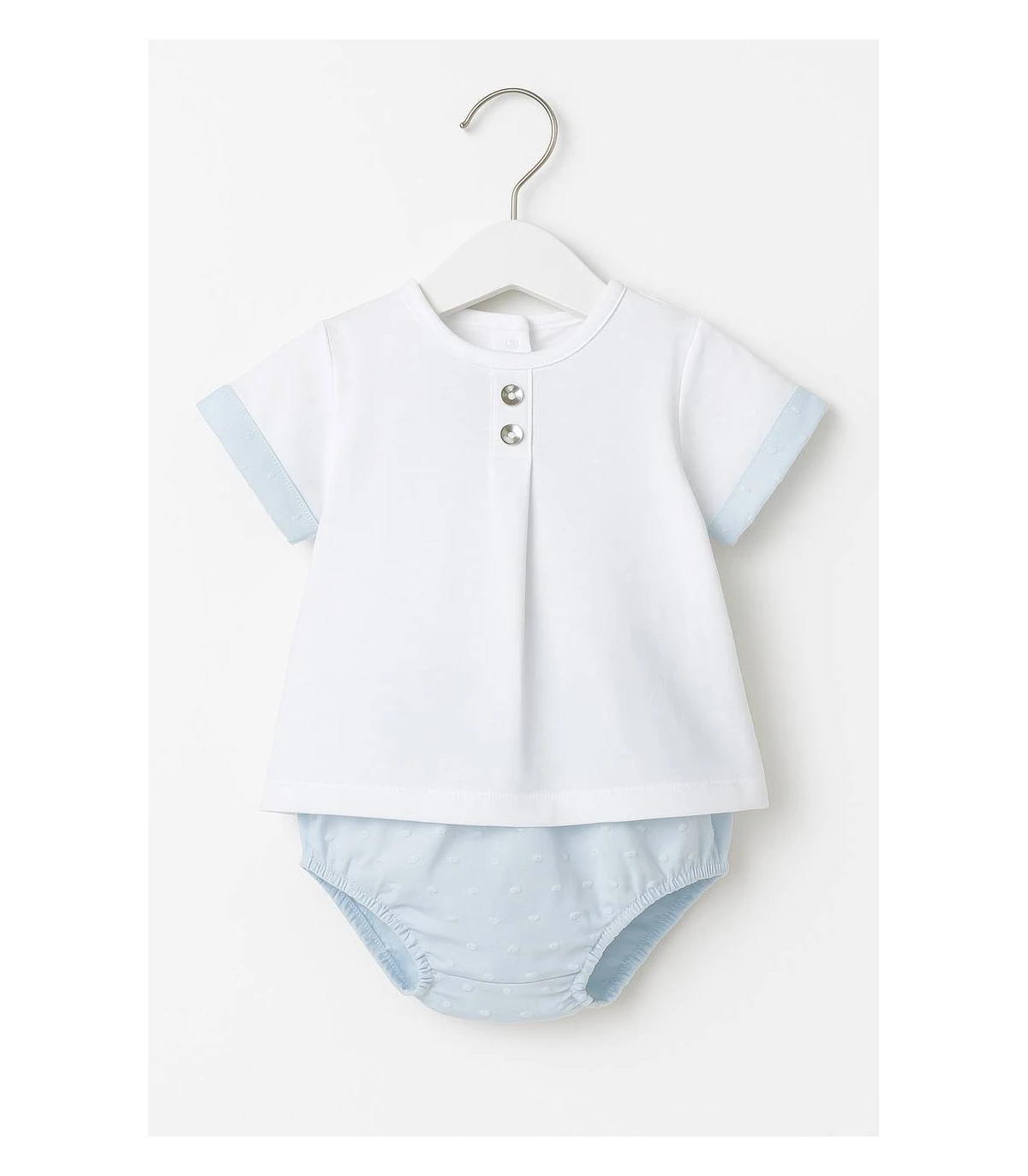 Conjunto de algodón para bebé disponible desde 1 mes hasta 36 meses ideal para los meses de primavera verano.