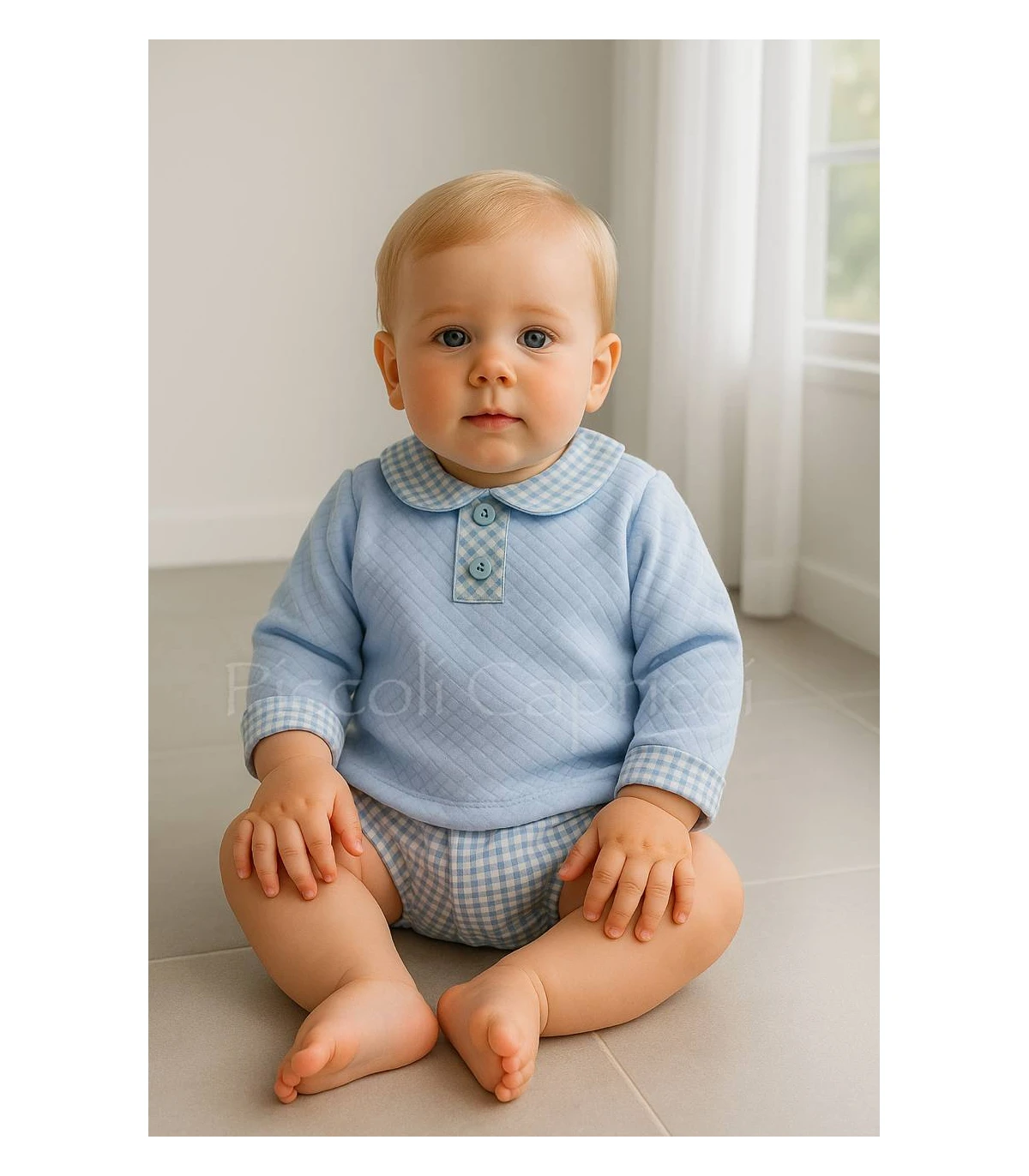 Conjunto de blusa algodón con cubre pañal vichi celeste