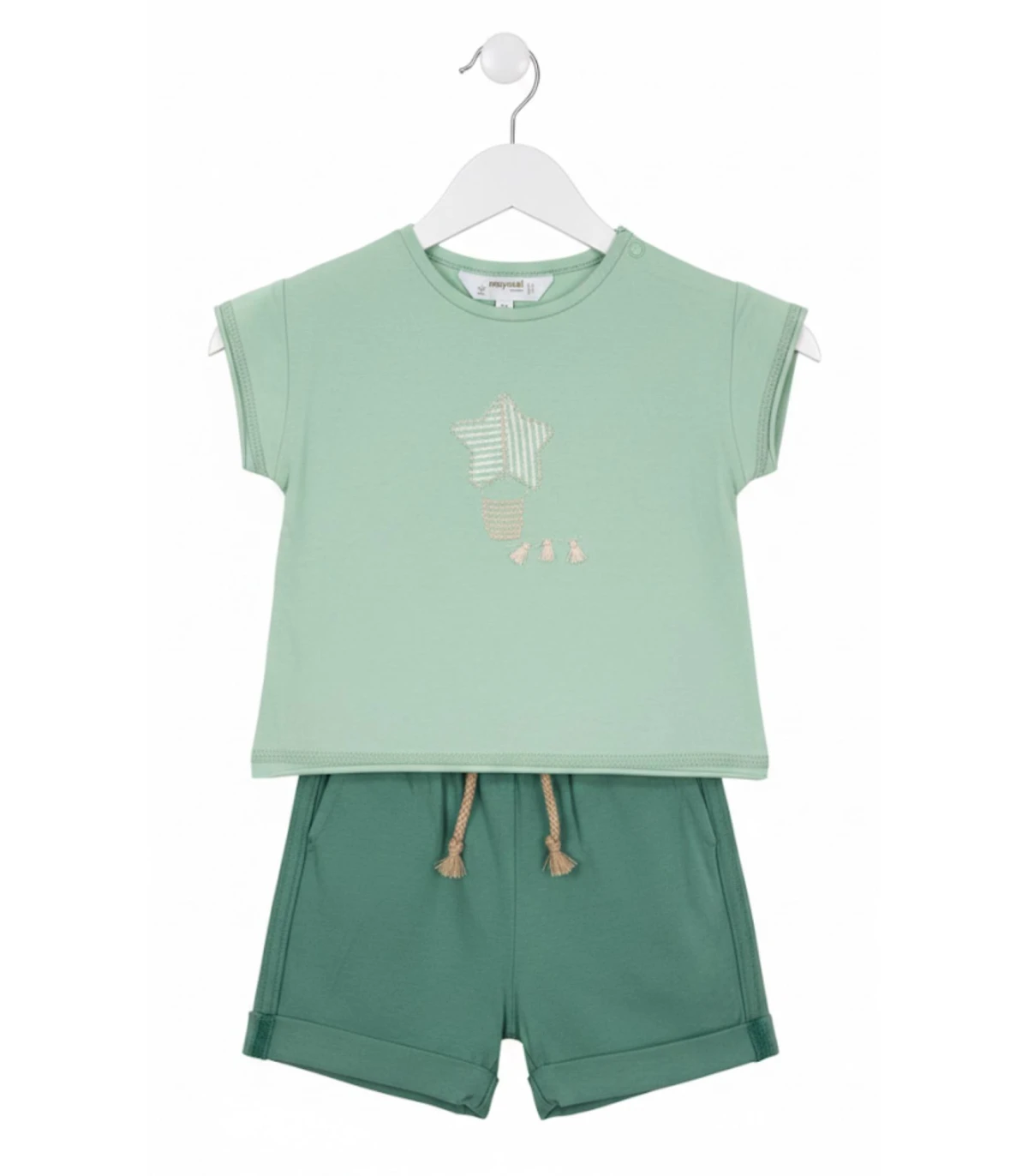 Conjunto de algodón para bebé dispinible desde 4-6 meses hasta 18 meses. Incluye culote y camiseta de la firma Mayoral