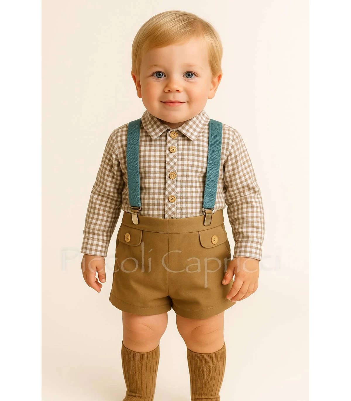 Conjunto con tirantes de tres piezas, pantalon, camisa y tirantes disponible desde 12 meses hasta 4 años