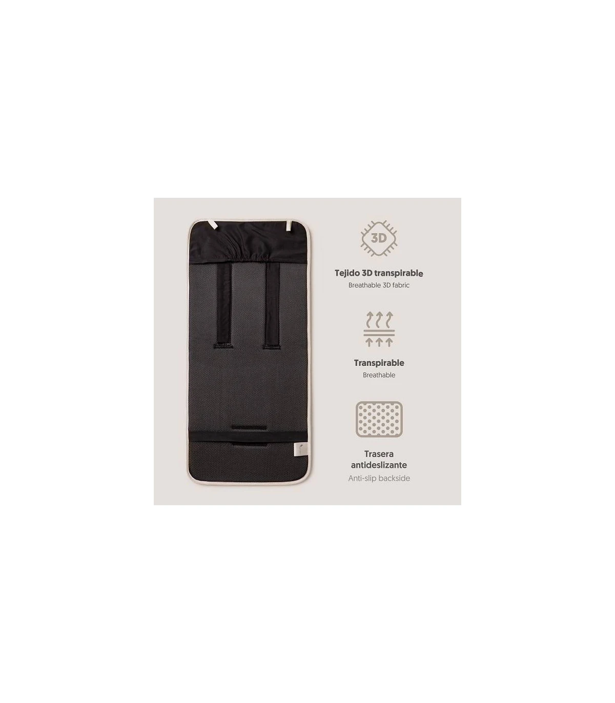 Colchoneta para silla ligera adaptable a todo tipo de carros. Incluye protector de correas