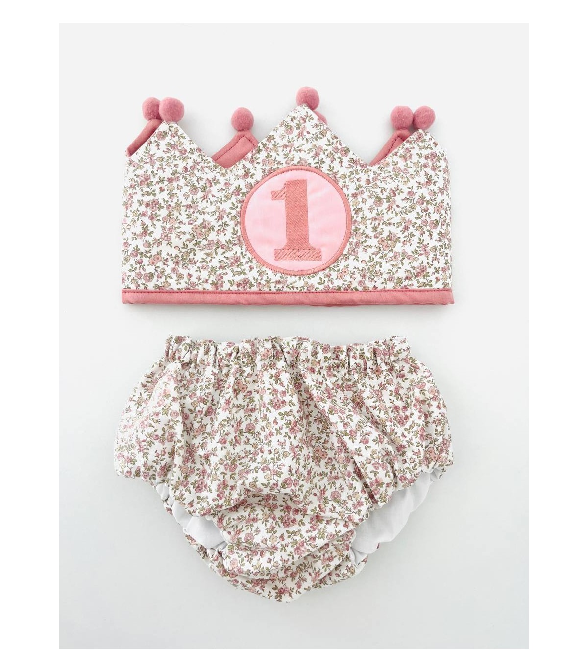 Conjunto cumpleaños dos piezas, corona con velcro por detrás y braga de tela elástica en la cintura y la parte de las piernas del bebé. Se puede hacer de la edad que queráis. Si quieres añadir un body personalizado también hablanos al whatsaps nuestro (685175826) y te lo añadimos a tu pedido con un coste adicional del body que desees más 10€ del personalizado.