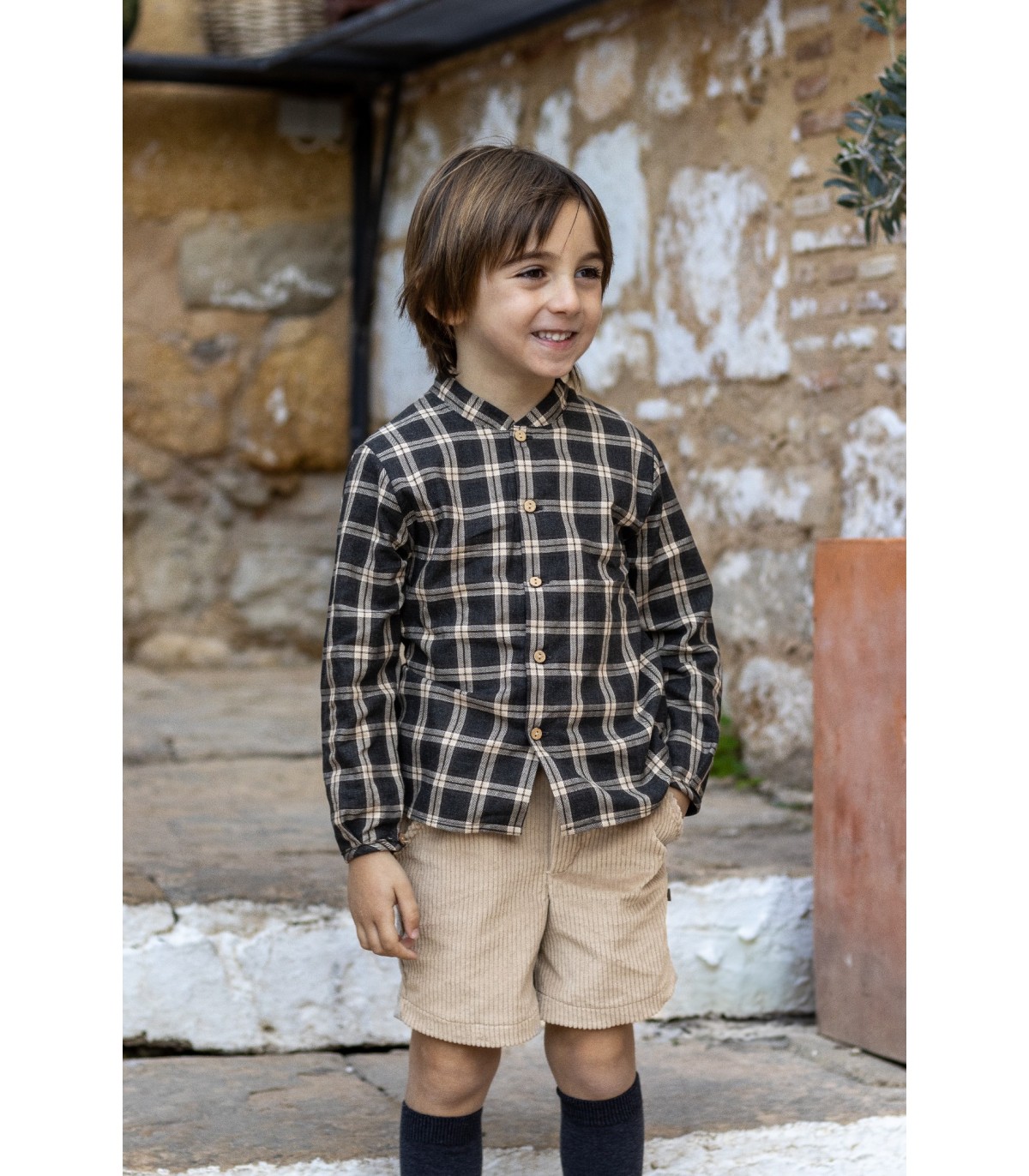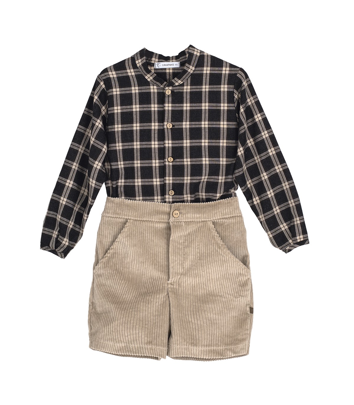 Conjunto de pantalon de pana con camisa de cuadros disponible desde 3 hasta 5 años