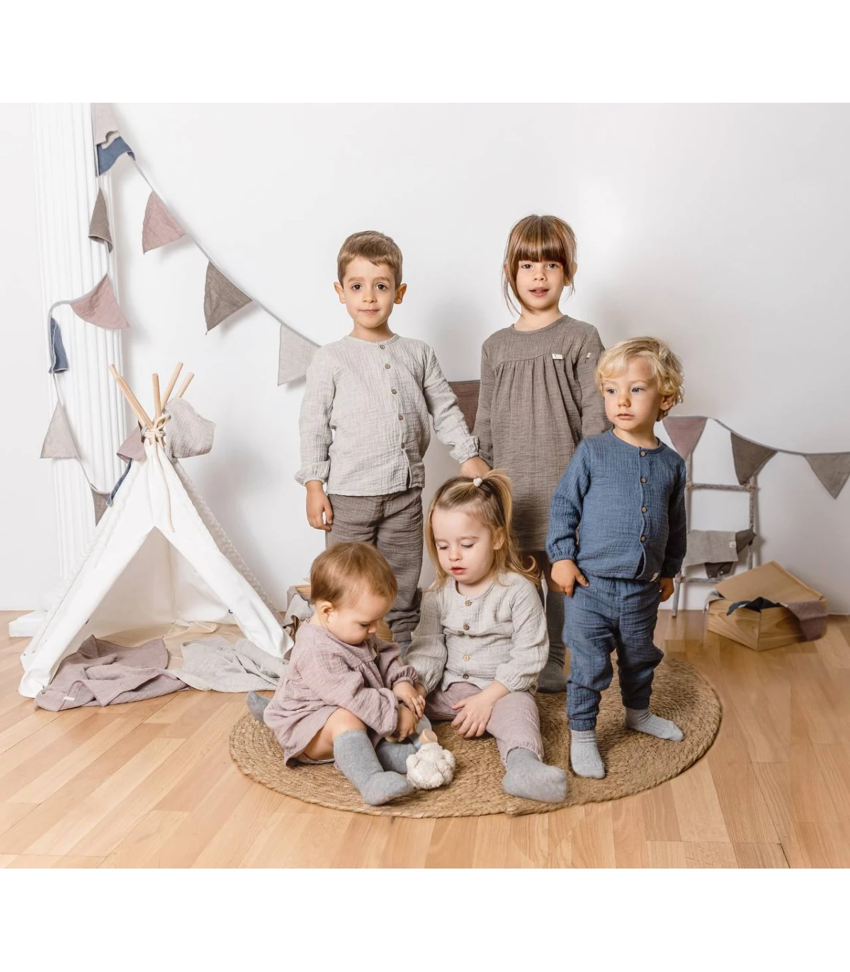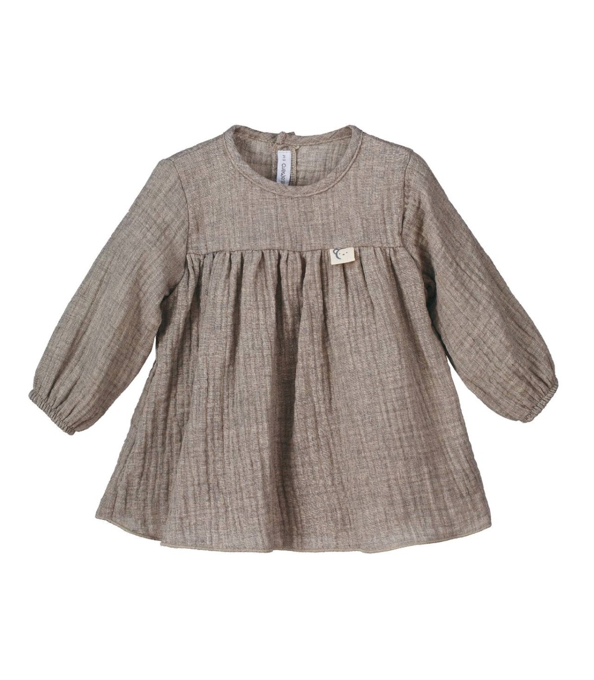 Vestido de muselina color rosa nude, una prenda muy versatil para su uso en entre tiempo.