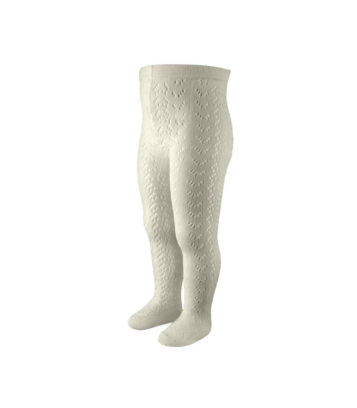 Leotardo tejido hilo de perlé fabricado con algodón natural y elastano. Leotardo de primavera verano para bebé de tejido fino de hilo con calado unisex que sirve para niño y niña. Con tallaje disponible desde recién nacido hasta 18 meses.