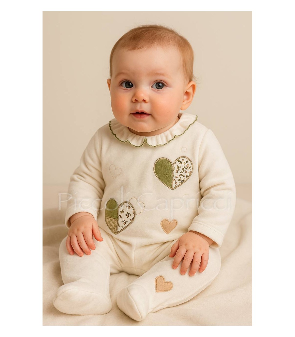 Pijama bebé corazones crudo verde
