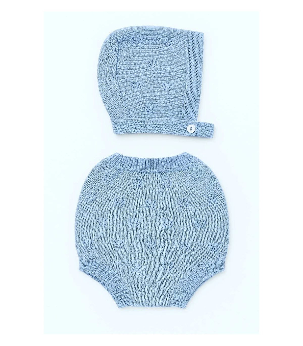 Conjunto de braga y capota de hilo ideal para combinar con bodys, camisas etc o para llevar debajo de vestidos. Disponible desde 1 mes hasta 18 meses.