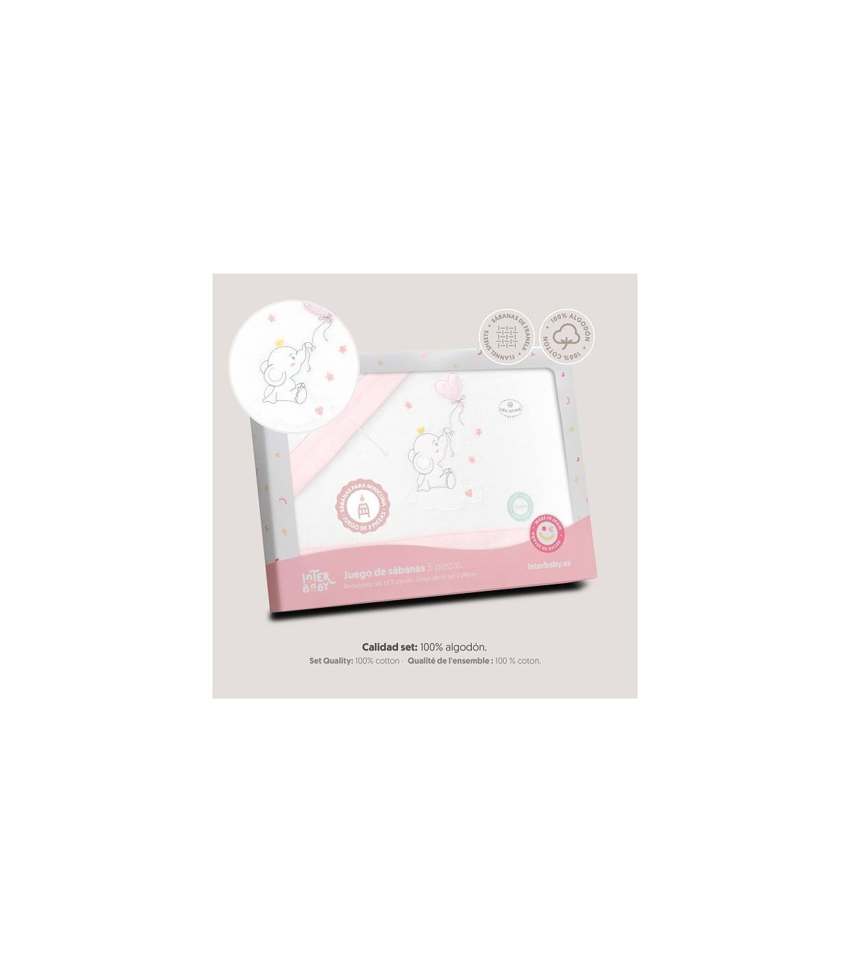 Sabana franela coche minicuna 82 x 51 cm elefante globo rosa