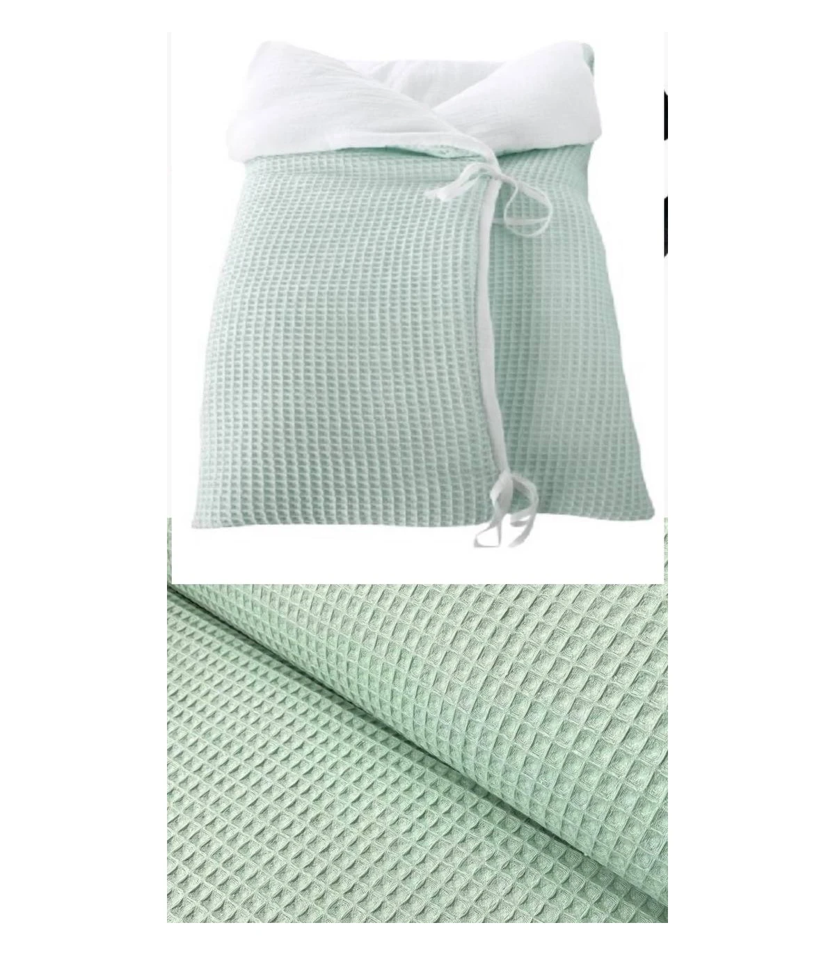 Este saco para bebé sirve para coger al bebé en brazo o para meterlo dentro del capazo. Este saco Tiene dos lacitos amarrado y una cremallera que si se abre se convierte en una manta o en una colcha que puede servir para capazo o para mini cuna.