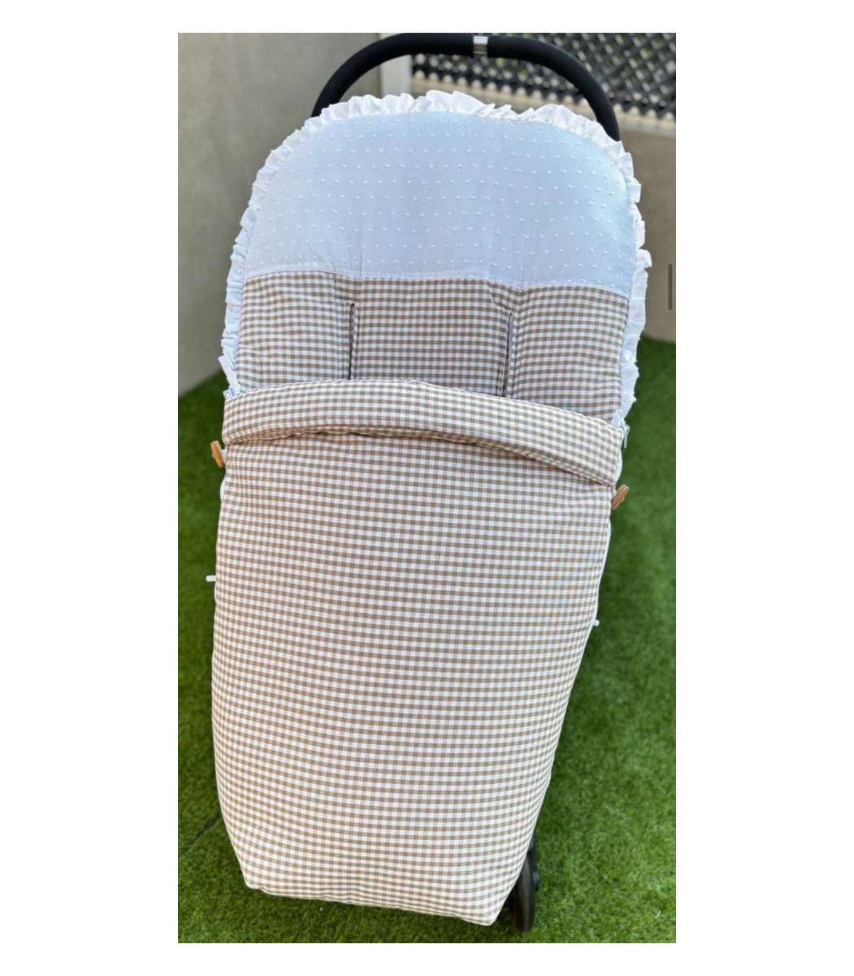 Saco de silla adaptable a la mayoría de carritos. La solapa se puede quitar entera y dejar solo la funda