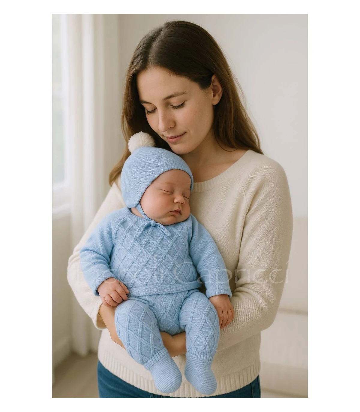 Conjunto jersey, polaina y gorro trenza polaina celeste