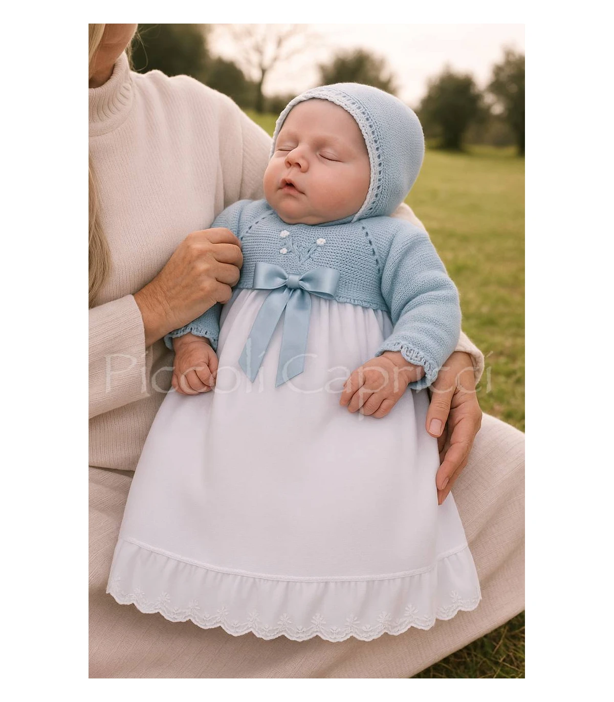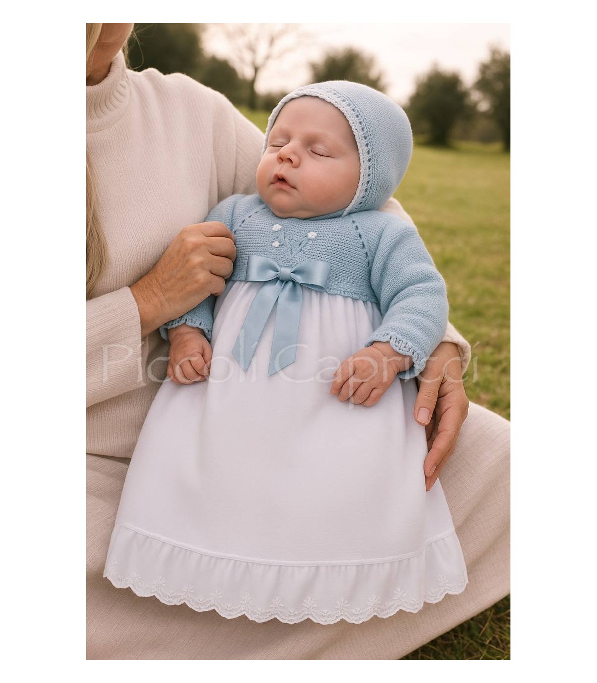 Batón con parte superior tipo jersey de lana cosido con parte inferior tejido de piqué nido de abeja color blanco.