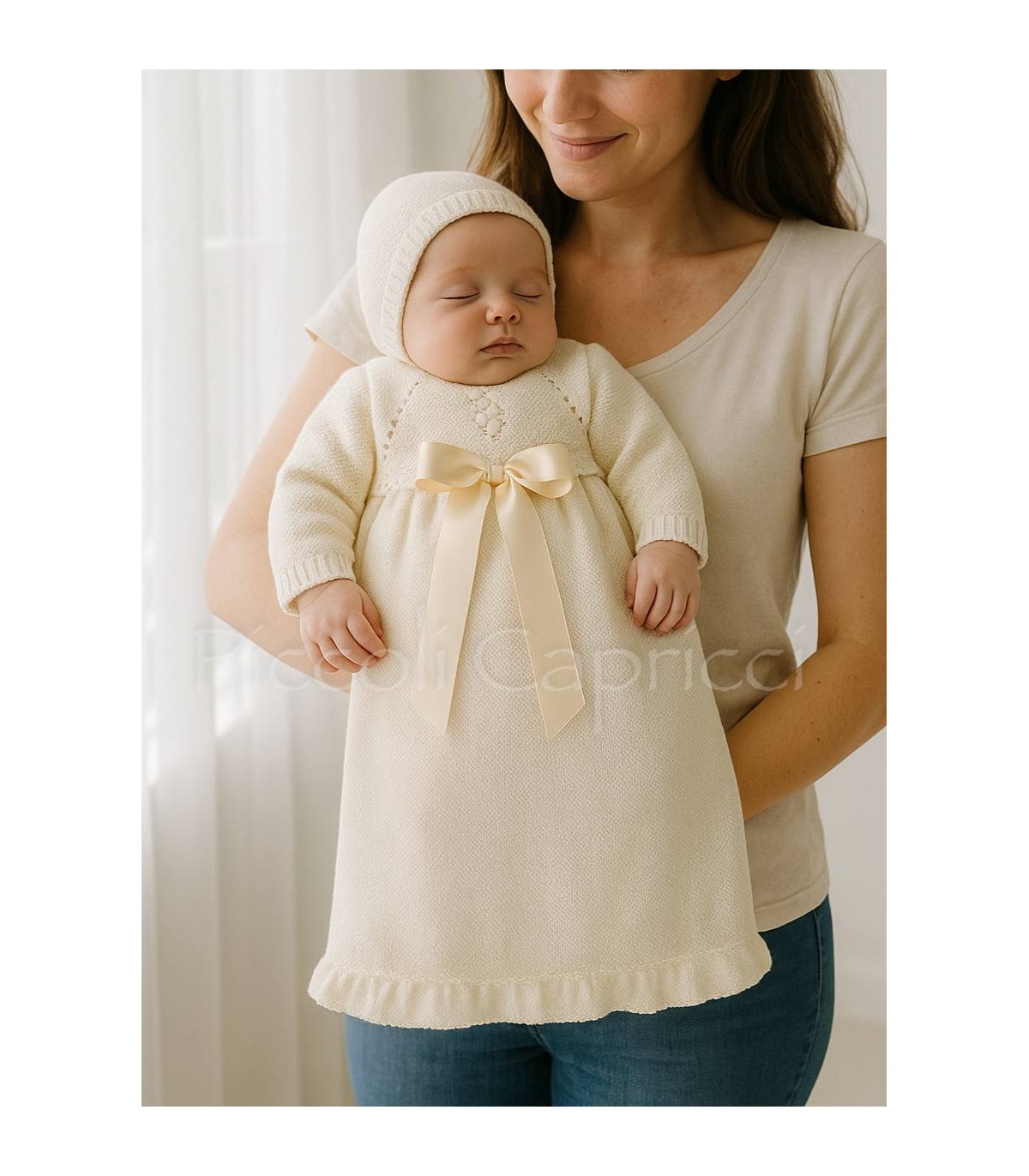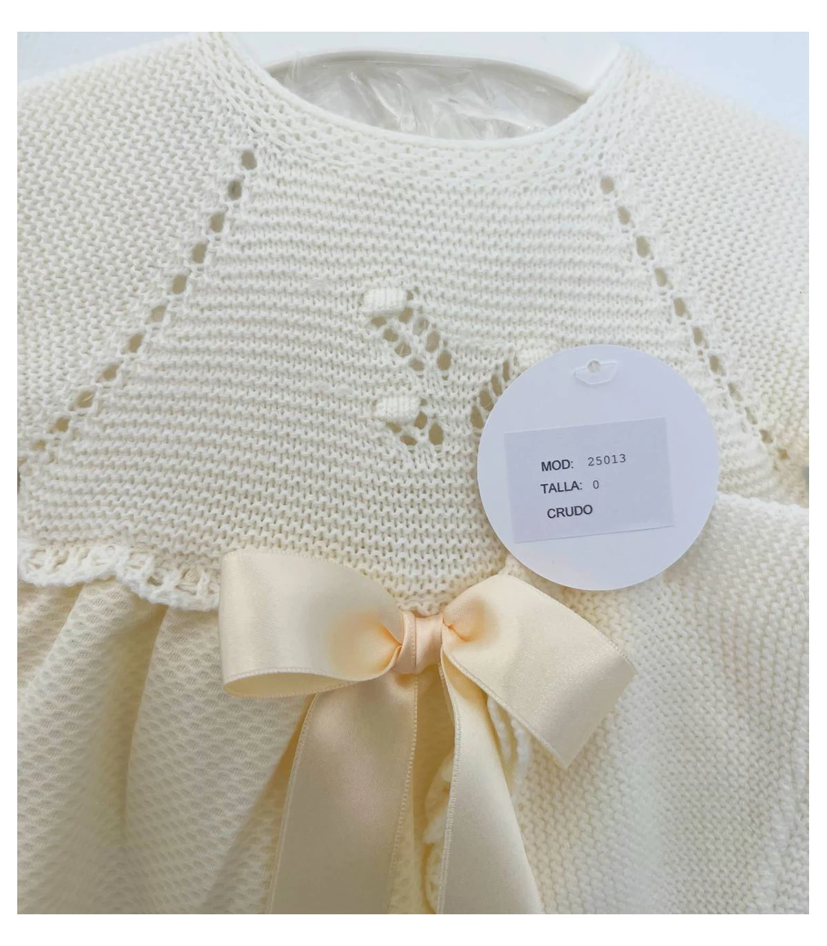 Batón con parte superior tipo jersey de lana cosido con parte inferior tejido de piqué nido de abeja color blanco.