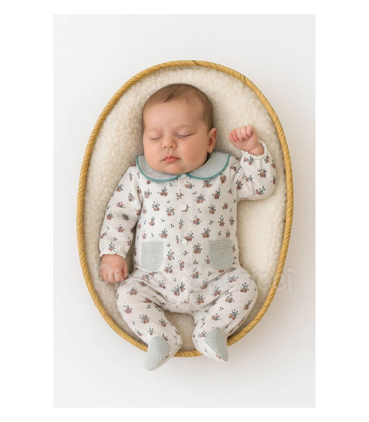 Pelele estampado de algodón para bebé desde 0 hasta 6 meses. Puede servir como pijamita o conjunto de calle.